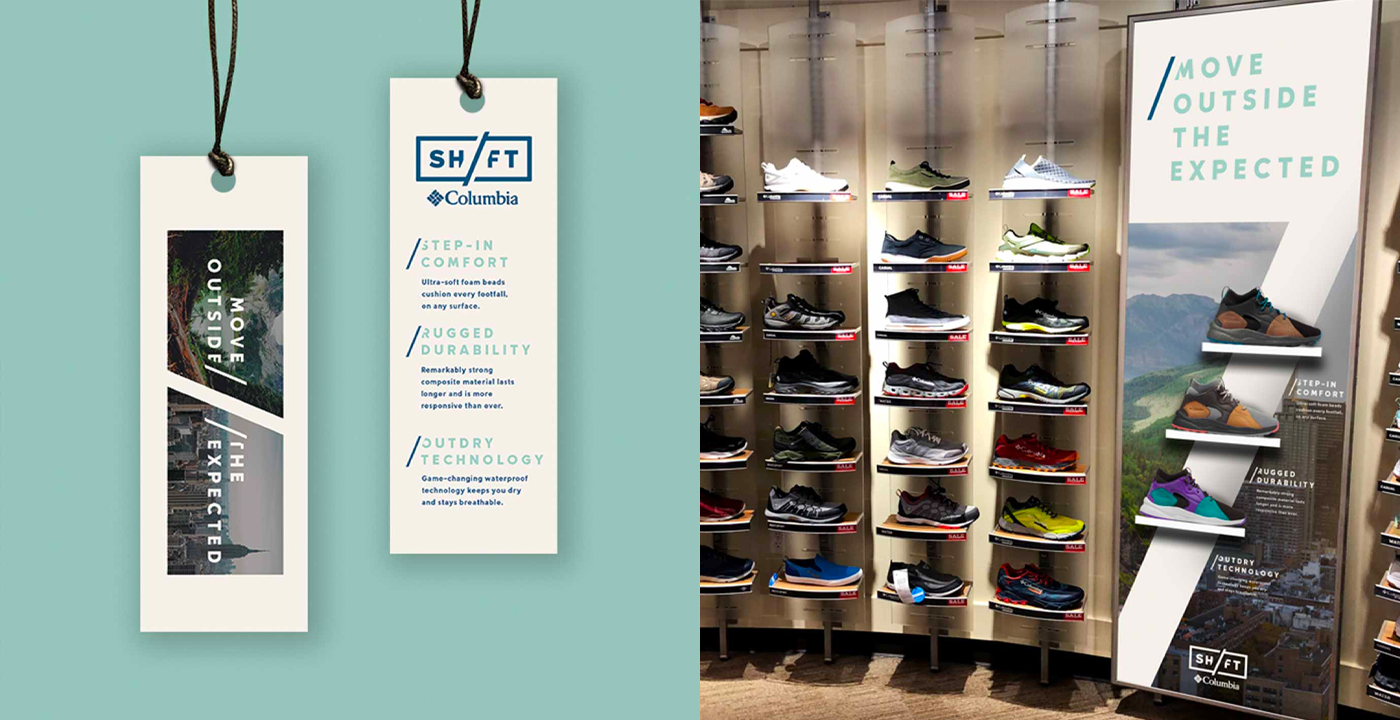 While working as a senior designer at Tether, I had the opportunity to work on the branding and art direction for SH/FT, the new shoe line for Columbia